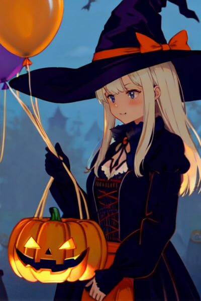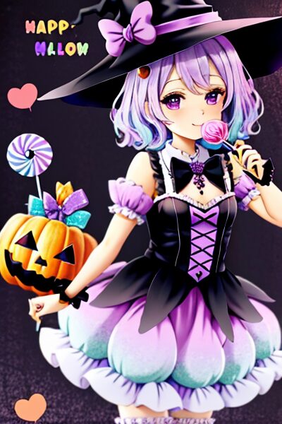 魔女や吸血鬼、パンプキンなど、キャラクター性の強い衣装はAIアートでも非常に人気です。