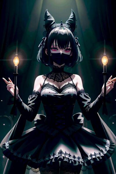dark ballet witch wearing lace mask and tutu, gothic stage lighting,