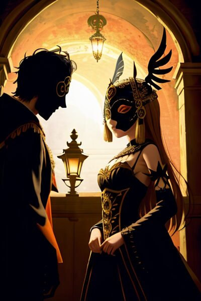 • 背景に city skyline at night, baroque ballroom, digital fog などを組み合わせて時代感を表現。