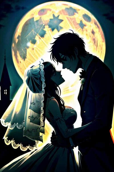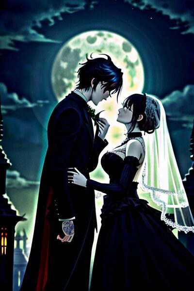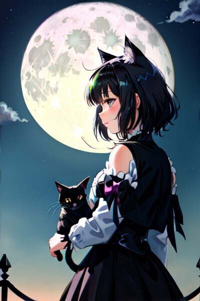 ハロウィンの象徴。黒いドレスと月明かりの組み合わせが美しい定番モチーフ。