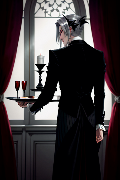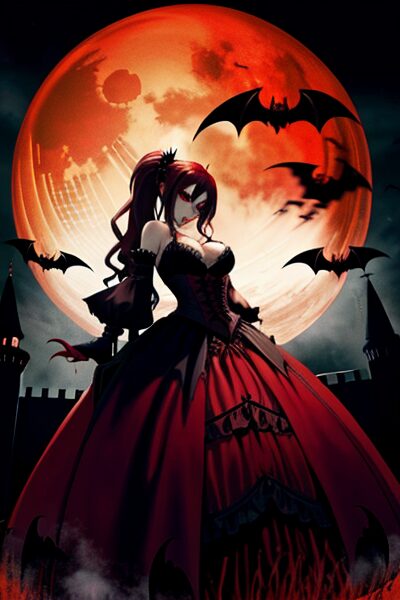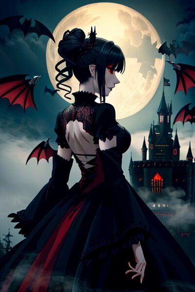 妖艶でミステリアス。赤い瞳とゴシックドレスで高貴な雰囲気を演出。