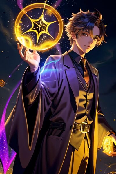 機械仕掛けの世界観と魔法の融合。金属光沢と歯車装飾が映える。