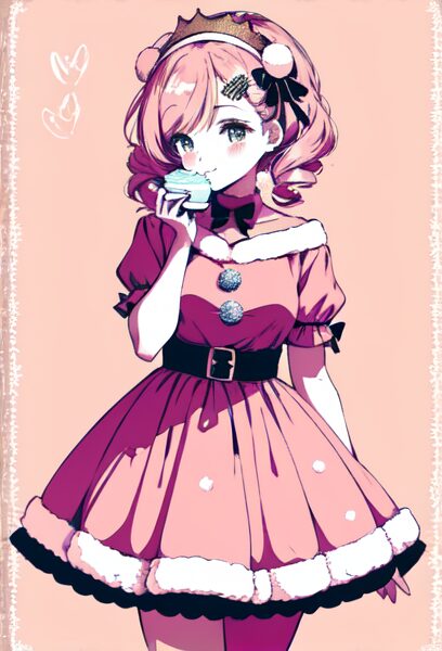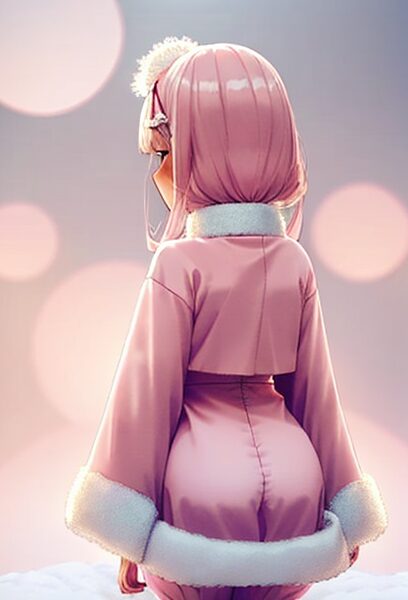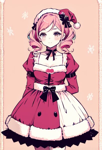 pastel-colored santa outfit, pink×white palette, fluffy textures, soft glow, gentle lighting, dreamy look, kawaii pastel aesthetic