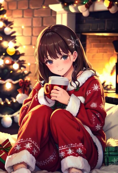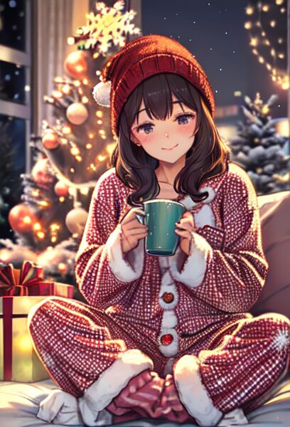 7. クリスマスパジャマの女の子×マグカップ(ゆるかわ癒し)