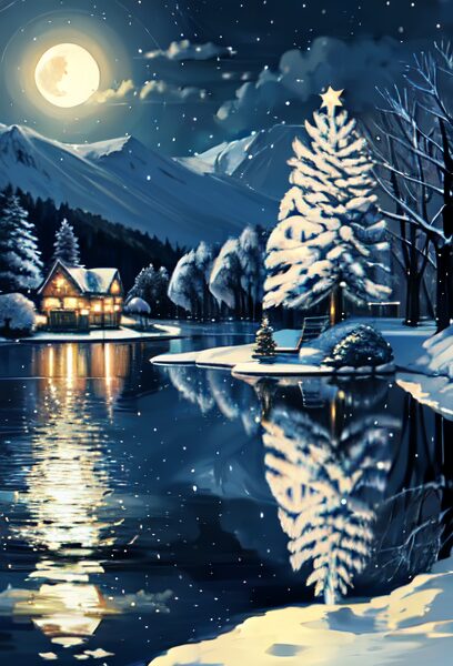8. 湖畔のクリスマスツリー × 月光反射