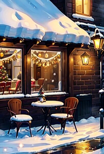 11. クリスマスムードのカフェ外観(あたたかい時間)