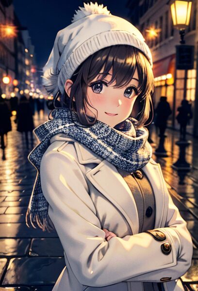 おすすめ構図:バストアップ+背景にイルミネーションの玉ボケを入れると一気に“可愛いクリスマス感”