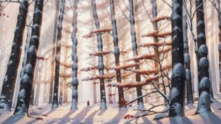 AI自動画像生成【幻想季節譚】雪待ちの森|紅葉が白に溶ける瞬間を描くAIアート特集【冬の幻想】